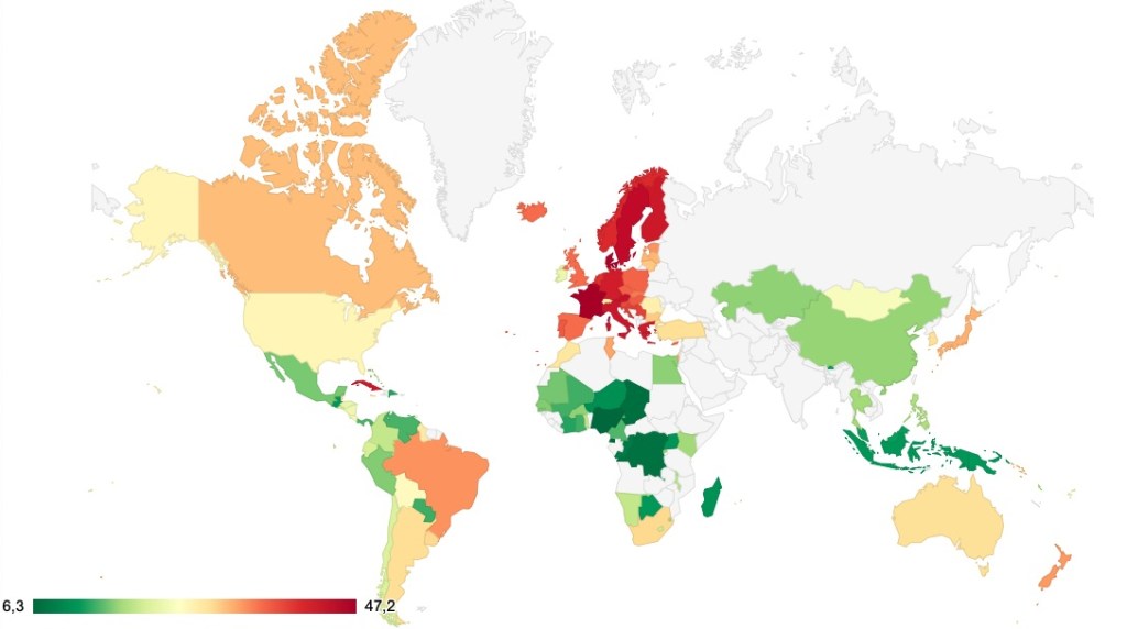 Para quien le interese, clicando en el mapa de abajo se puede acceder a los datos de la mayoría de países, según los publicaba Expansión.
