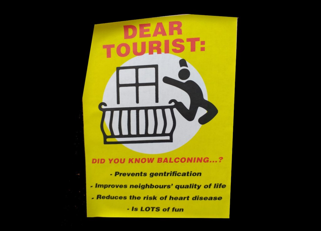 La verdad es que hasta hoy no me había dado por aludido. Yo no era un turista, sino un sufrido vecino. No gentrificaba mi barrio. Era mi propia calidad de vida lo que decían defender los autores del cartel.