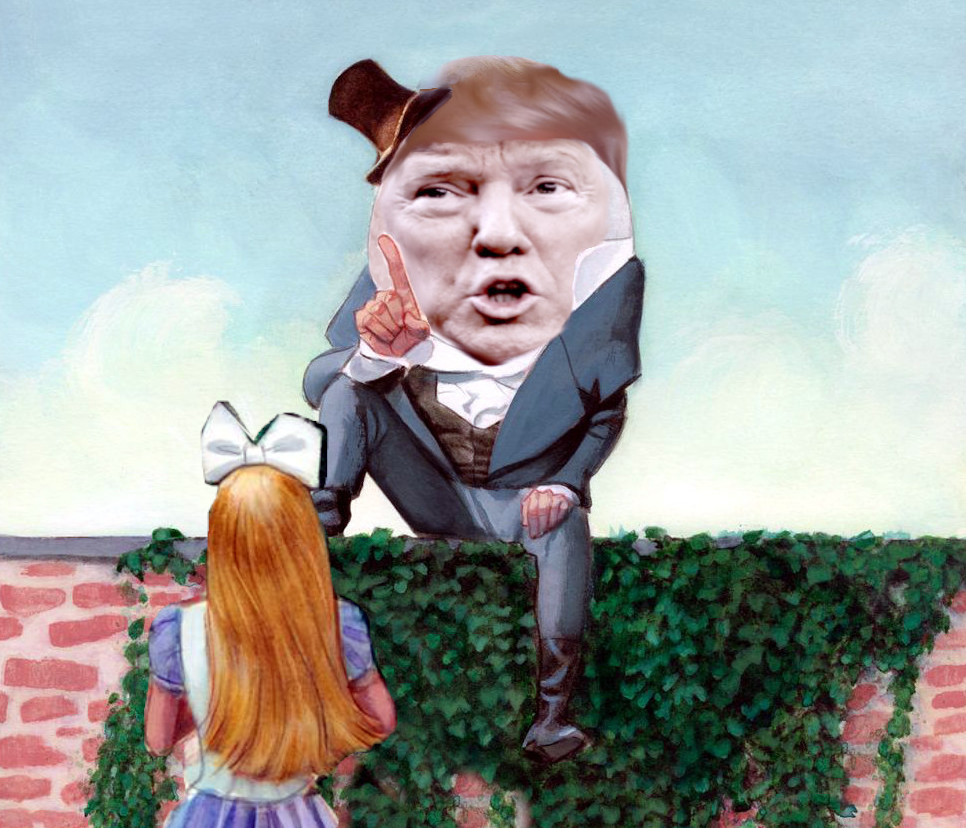 Al igual que Humpty Dumpty, Trump cree tener el poder de poner nombre a las cosas y decidir lo que significa cada palabra. En su patológica mezcla de grosero infantilismo y narcisismo desbocado, se figura omnipotente.